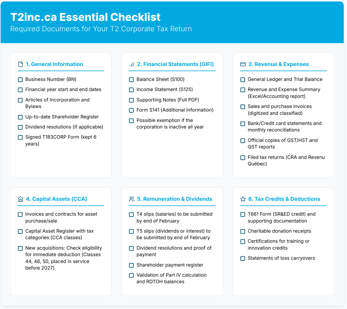 What Corporate Tax Documents Do You Need to File a T2 Return? The Complete T2 Checklist